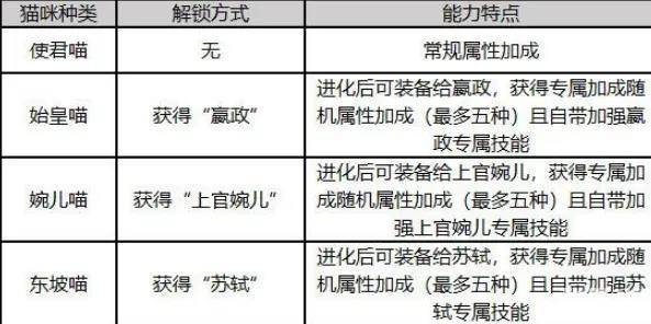 随着名士猫灵等级的提升,它的增益属性也会随之提升,当它的等级达到10级、30级、 50级,它将会解锁新的技能,可以较大幅度地提升名士猫灵的加持能力。