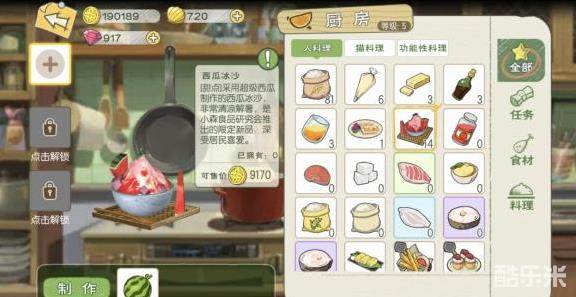 推荐种植西瓜,有时候西瓜会变异成超级西瓜,这个很好获得的;再就是炒五色蔬丸,食材容易获得!!