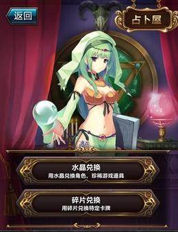 在占卜屋中,可以使用水晶兑换角色卡牌和道具,还可以使用角色碎片兑换角色卡牌。
