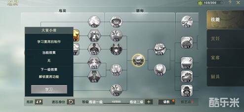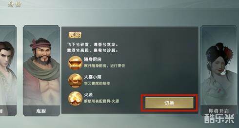 首先我们在来到身份的界面中,例如我们选择了乐师之后,点击庖厨的技能界面,在左下角就能够看到有一个切换的按钮,单机支护就会从原本乐师的身份切换成庖厨了。