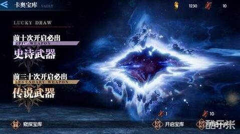 卡奥宝库我们放在最后重点说,这个在游戏中是一个抽卡玩法,大家可以用启示之印来开启宝库,之后我们就能获得各种不同的道具了,当然也包含武器和传说级武器,这个是有保底的。