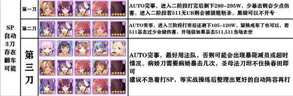 BOSS魔法攻击力高,物抗高,法抗较低,技能减TP,减大幅物攻,因此BOSS建议用法队解决,加上UB减法抗的情况,伊利亚T刀有暴毙风险,具体本人会进行实验,SPBOSS每个阶段都需要带T,二阶段注意BOSS的混乱技能,谨防511乱杀,剩下的用单打BOSS的阵容解决即可