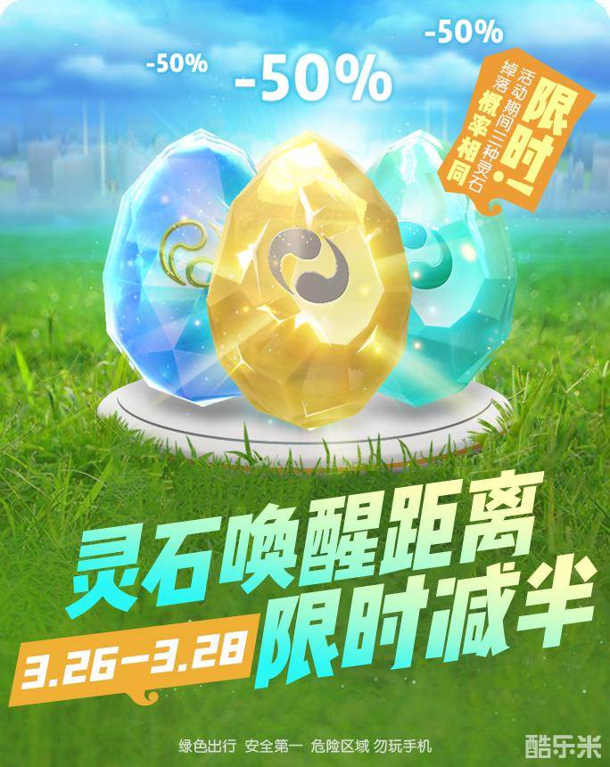 活动期间,灵石唤醒距离限时减半,同时2千米、5千米、10千米灵石掉落概率相同!