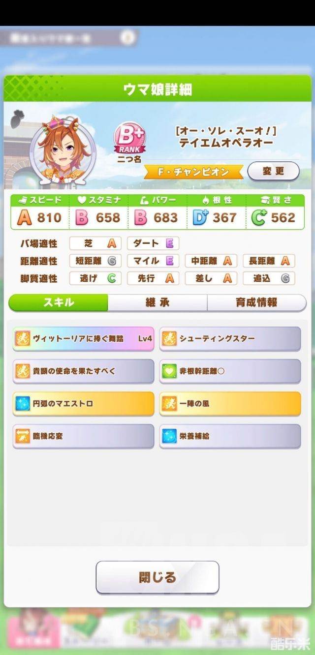 终盘技能:嫖大佬种马继承强力终盘固有技能,用于终盘速度最大化,建议继承同为中长距离先马的小特、麦昆、东海帝皇之类的固有技能,皇帝的技能不太建议,理想中的先马比赛在终盘时往往处于前三的位置,是很难触发皇帝技能。
