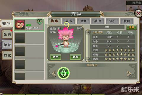 此外还可以对自己的宠物进行灵修,灵修分为天魂、地魂、命魂三种。分别增加攻击、暴击与命中。可以根据自己的喜好来进行选择。
