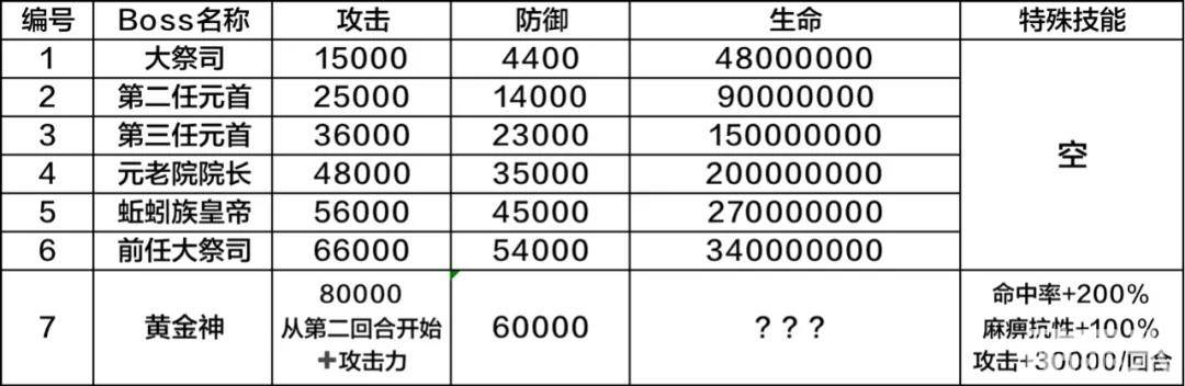 ● 终极Boss是黄金神,无限血量,无法闪避、无法麻痹,但是可以暴击吸血,每回合+3W