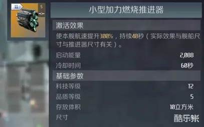 组件件:超载注喷推进器*3,能量回复增效器*1装置:小型离子推进器或小型加力燃烧推进器*1,信号放大力场发生器*1,短距跃迁核心干扰器*1
