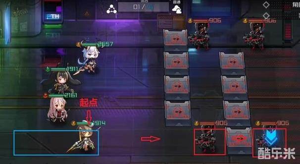 沐子菲在下图位置部署,跳过第一个回合等敌方小兵走上来,然后向右绝云A+绝云直接到达指定目标地点。