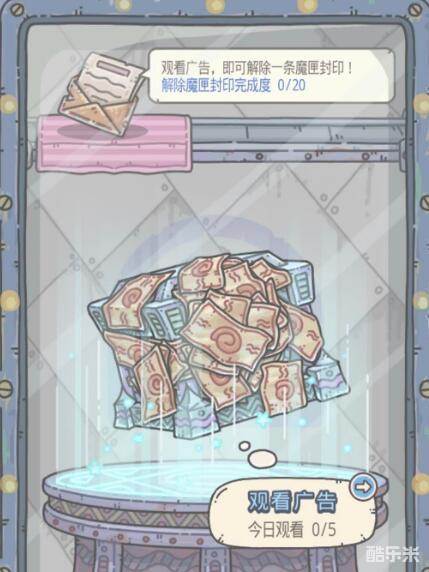 4、在活动界面中观看广告即可解除一条魔匣封印,合计共有20条魔匣封印,每日可以观看广告5次,4天时间就可以完成封印解除了。