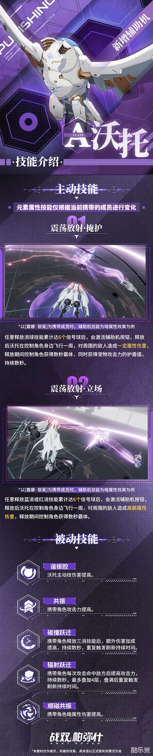 「沃托」是继元谒后,《战双帕弥什》推出的第二名A级辅助机,它以以鸮形目动物为原型制作,看上去圆头圆脑的呆萌非常,然而战斗力却不一点也不含糊!翼翅装载放射性结构,拥有增伤和霸体效果,能够有效地为指挥官提供战斗支援。