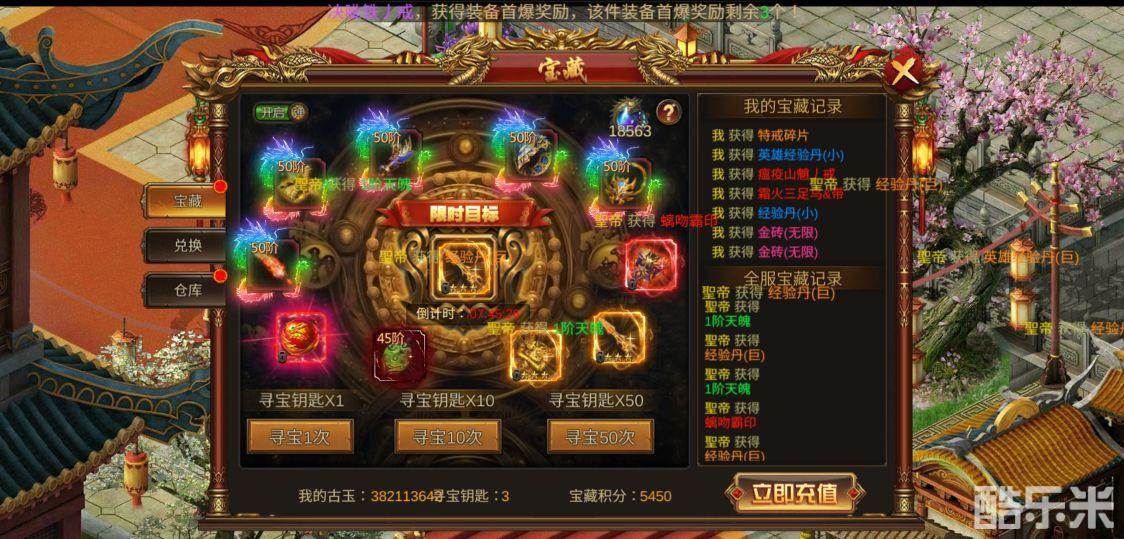 累计充值50000元:三才仙装自选*6+翅膀随机礼包*5+终极㊣龙帝龙剑魂★★★★★*1+终极㊣龙帝圣盾★★★★★*1