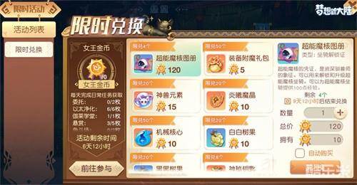 除了即将到来的公测让人充满期待之外,其实最近《梦想新大陆》游戏内的活动也是缤纷多彩、诚意满满。譬如在昨日上线的限时活动中,玩家通过每日完成日常任务即可获取到女王金币,可用于兑换包括超能魔核图册、神兽元素在内的游戏珍稀道具。其中超能魔核图册是该坐骑的使用凭证,同时也是资深驯兽师的象征,可以用来解锁和升级超能魔核坐骑,如果是已经拥有该坐骑的,使用图册则可以为坐骑提供100点经验。
