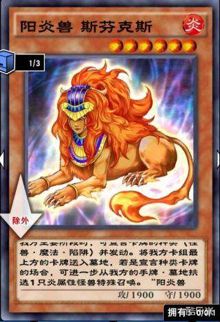 阳炎卡组助推器,可以除外狗人面狮人犬兽给其他的动物园加攻击力,一般是吃掉马上要被破坏的动物,下2~3张
