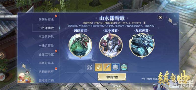 领完奖励,别忘了再移贵步,去中州大地看看绝美春色。然而总有魔族不愿人类欢庆,总想着要搞点事。所以天命者们也别忘了找到十方天君领取罗盘,踏春寻春之路上顺便查探魔族气息、击退它们,也能收获价值不菲的奖励。