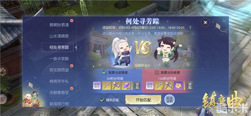 踏青累了,天命者们还能到“何处寻芳踪”里伴着浓浓春意,来一场别开生面的“捉迷藏”:追猎者与伪装者同场竞技,各自利用技能找到躲起来的其他人,或是逃开追猎者的寻找——打打闹闹间,就能收获各类珍稀好礼!