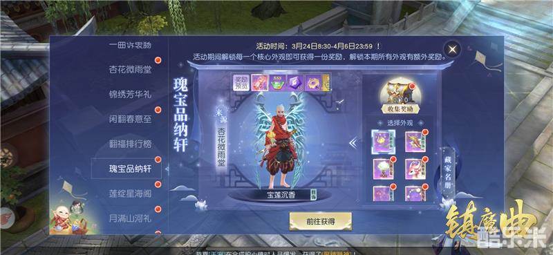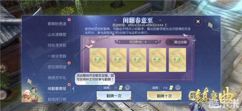 “瑰宝品纳轩”里,全新挂饰、坐骑、万象、光韵、头像框、聊天框、步尘等应有尽有;“闲翻春意至”中,天命者们可以尽情翻牌、收获不同的惊喜豪礼,还能参与排行榜、赢外额外奖励!此外,更有“锦绣芳华礼”“莲绽星海阁”“月满山河礼”等多个返利活动同步开启,让你清明节里嗨个痛快!
