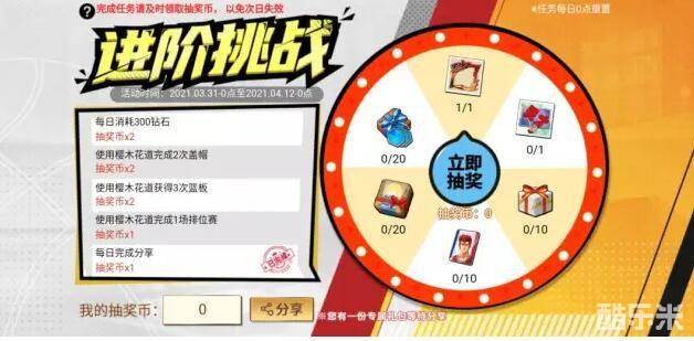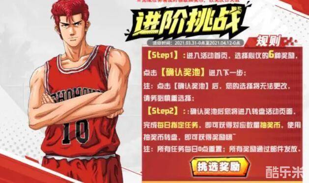 以上就是灌篮高手手游进阶挑战的玩法攻略,本次的活动主要就是抽奖玩法,其中比较贵重的就是樱花头像框、大头卡等。