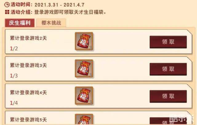 第二个活动是这个累积登录领取奖励的活动,累积登录5天可以得到5个天才生日福袋,而福袋可以开出以下这些道具,维一的第一个福袋是88钻石。