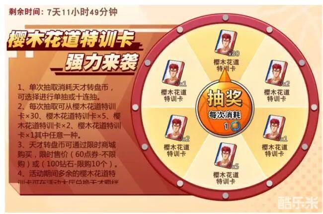 所以通过上面的分析,如果你想通过每天10张特训卡购买大头卡之外的渠道获得樱木的大头卡,奇遇礼包无疑是最划得来的方式,至于这个寂寞转盘,特别提一句,奇遇礼包的这个绿卡是可以在扩层后使用的,大家注意。