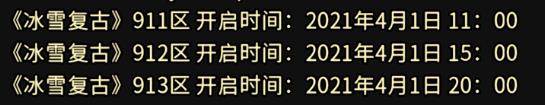 《冰雪复古》911区开启时间:2021年4月1日11:00