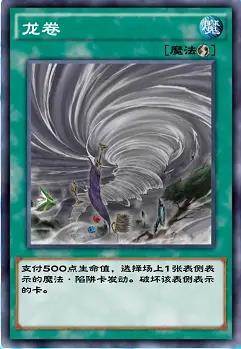这边要重点说一下龙卷(抽策略强化卡包)这张卡,乍一看可能觉得表侧表示的魔陷有点鸡肋,但是这卡能直接炸了吸血鬼的场地卡,吸血鬼没了场地卡战斗力直线下降,还能克制亚马逊的秘宝(你等他攻击你怪的时候再发动,他不能卷回攻击,他的怪就直接被装撞死了),斧王卡组也能炸一下场地发挥一下功效,神鹰也能直接破了他的场地,甚至能克制烧血卡组的燃烧大地和咒魂之假面,直接带2张。