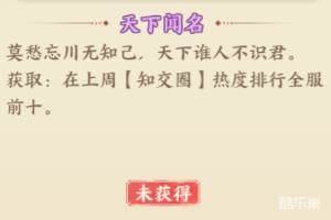 忘川风华录天下闻名怎么获得?天下闻名是游戏中的一个成就,在游戏中的各种称号都有着自己的作用,表明我们的实力,下面小编带来的就是忘川风华录天下闻名称号获取方法,这个称号在游戏中需要我们能够到达【知交圈】热度排行全服前十,难度还是非常的高的。