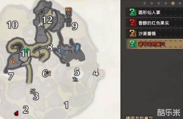 1、我们先接取沙原的探索之路,然后按x,搜索硬甲龙的巢穴,即可看见11区有;