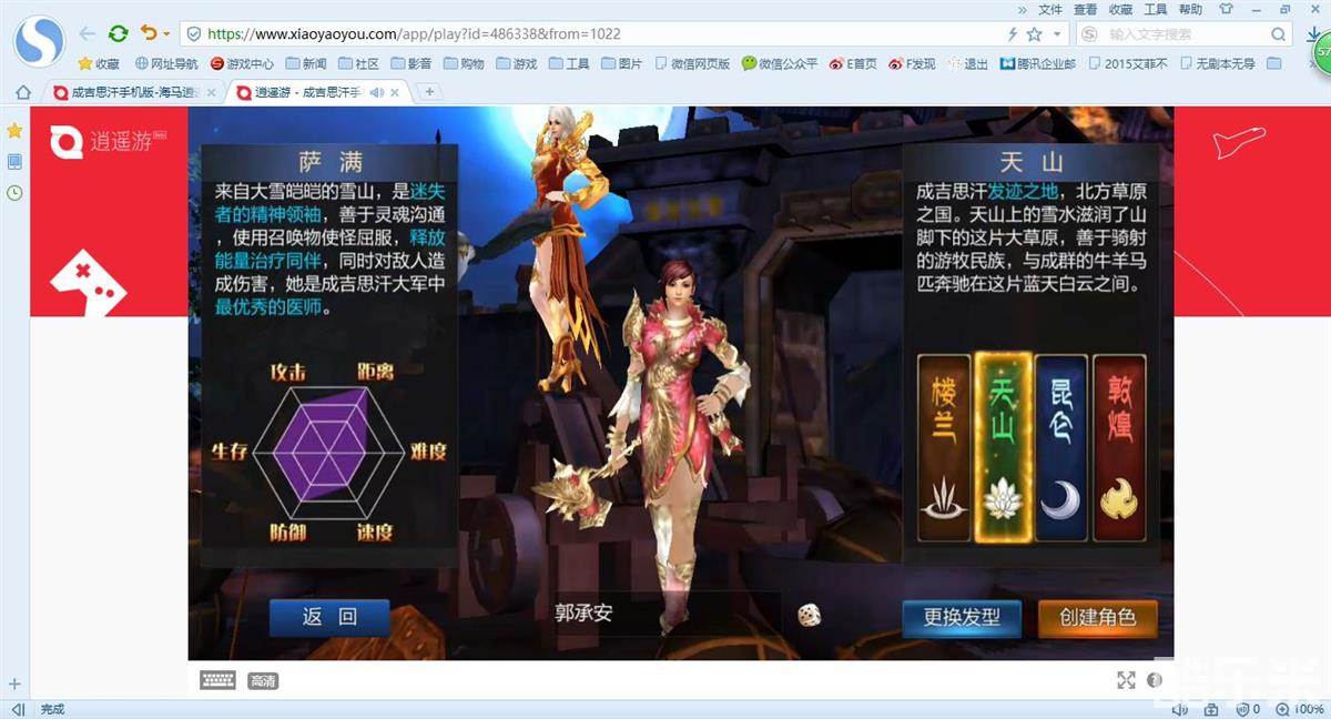 《成吉思汗手机版》高度还原了端游的职业,但和《成吉思汗》端游的职业不同的是,剑侠和骑射这两大职业尚未开放。目前只保留了属性上分别对应近身、远攻、法功和治疗的四个角色:武士、火枪、萨满、先知。这也是目前MMO题材手游较经典的职业属性搭配。玩家在选择职业的同时,必须在昆仑、天山、敦煌、楼兰这四个国中选择阵营。