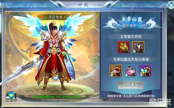 需要参加神殿争夺,首先要加入仙盟,选择一个好的仙盟加入,或者自己建一个横扫其他仙盟,都不是事情,像楼主我这样的肯定一个人建一个仙盟不收人的,我独自一人站在仙界城楼上啊,唱着挪威的森林,一个人拿下一座城。最后我被一群人围殴了。Om~