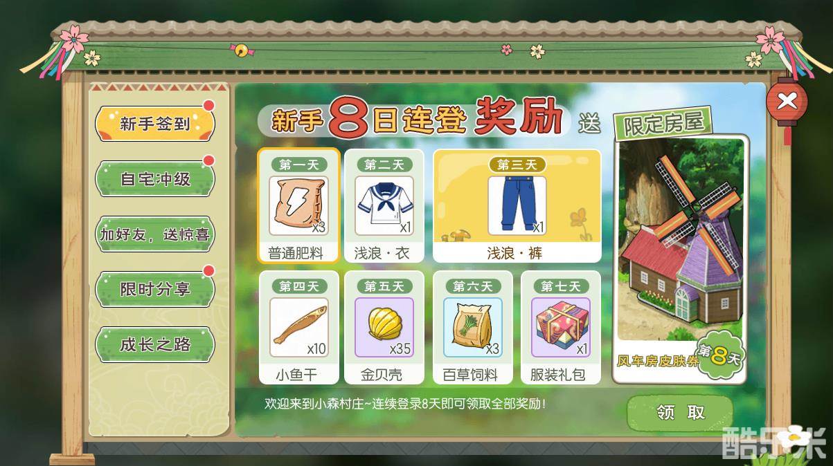 不要998,也不要98,村民们只要连续签到八天即可获得漂亮实用的风车房皮肤券一张!拥有它,立刻就能变成小森村的人上人!