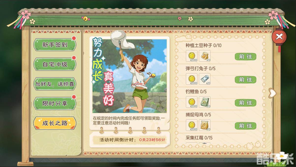 入驻小森村第一步,当然是勤勤恳恳种田打猎,先别抱怨,现在做日常也有奖励啦!官方的羊毛这时候不薅更待何时!只要在规定时间内完成相应的任务,就能领取相应的奖励,赚取成长第一桶金~