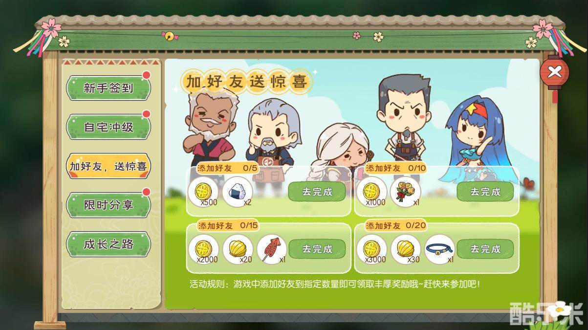 除了种菜撸猫之外,在小森村生活的日子还能结交到有趣的新朋友们,生活交友两不误!当好友添加到一定数量时就能获得金币、贝壳和限定道具奖励,马上让你的背包鼓起来!