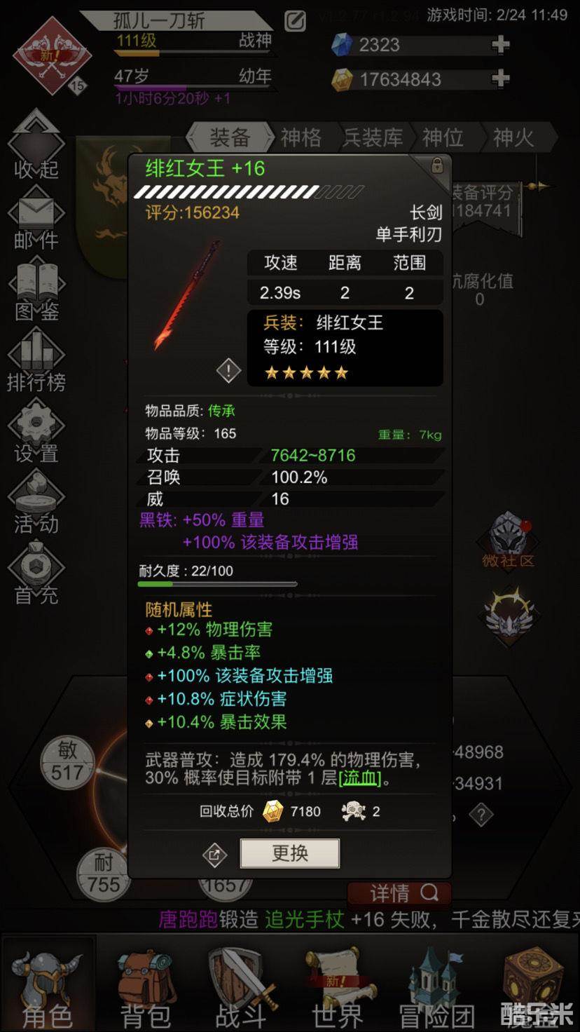 大更新之后重铸装备有了同类型不能叠加重铸,所以就可以减少随机区间来增大需求属性出现的概率。比如绯红,需要,攻击,暴击,增伤属性。