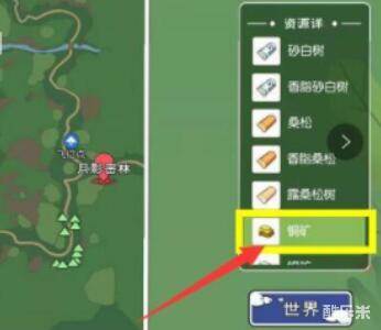 首先铜矿主要分布在朝晖森林,我们来到朝晖森林中,点击右上角的地图查看当前朝晖森林的地图之后,右边选择铜矿之后就可以自动前往了。