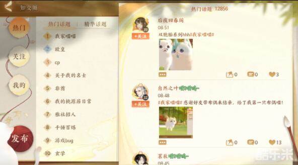 知交圈在主界面右上角,跟朋友圈差不多的个标志,就是知交圈了,在这里可以发布一些自己的趣闻,关注的人数越多自然热度也就会越高了。