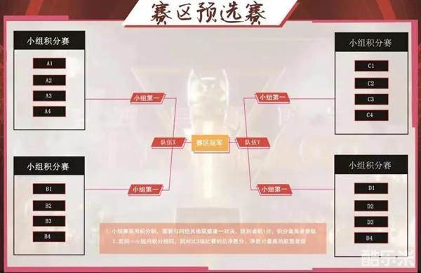 预选赛阶段:预选赛会时间将会持续五周,并且每个战区会分成32个赛区,每个联盟会打三轮小组赛,其中小组第一将会出线,继续打两轮淘汰赛,最后决出每个赛区的区冠军,共计32队参加季后赛
