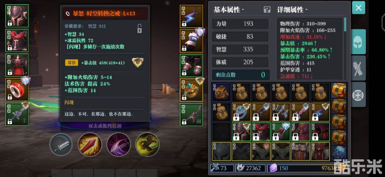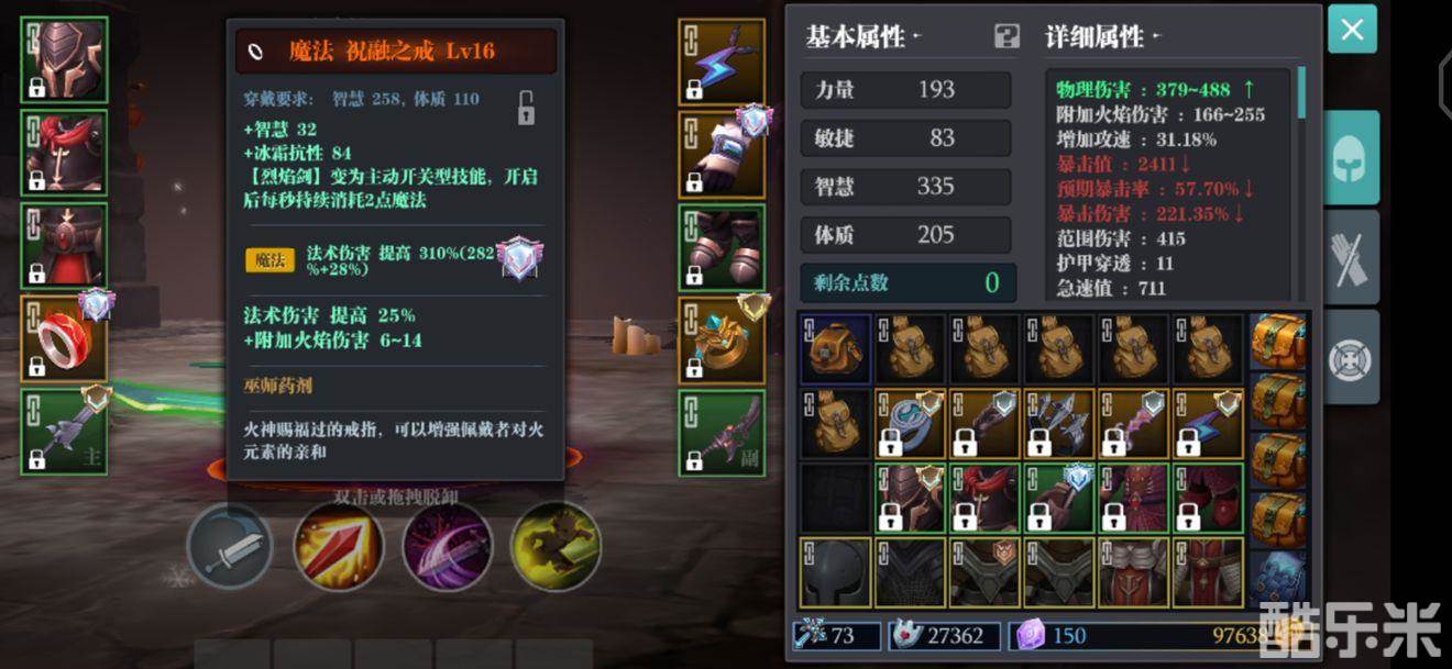 2、火舞者75%点燃,要求炎魔斗+25%点燃,优势力量+30%附火