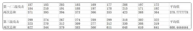 攻击方式上,双刀一共有三段攻击,第一段和第二段相同,第三段为第一段数值的1.5倍(这是小批量数据测试而来的,可能有不准确,测试数值如下图):