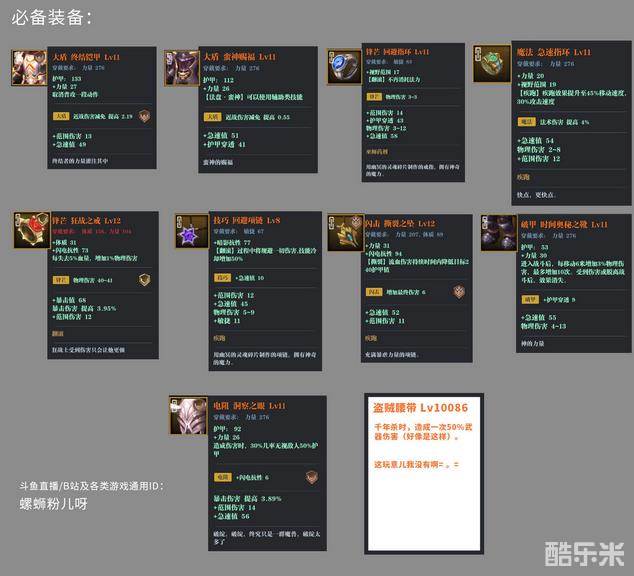 如果你选择刃之王流派,那就需要堆护甲了。我现在是655护甲,加上撕裂的240,就有900点护甲了。其实护甲这个东西,用磨盘叠是很好叠的,收益也高,鞋子本身也可以带破甲。刃之王的缺点是下坑一红一黄,赌不赌得到就看命了,我有一天10次下坑一次没赌到,直接原地他酿的爆炸。