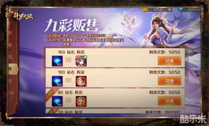 迎接九彩女神宁荣荣的到来,《新斗罗大陆》专场活动中兑换和贩售活动同步开启,魂师大人们可以通过消耗钻石和九彩仙兰兑换一定数量的SS+宁荣荣碎片及其他珍贵资源,九彩仙兰会在普通、精英副本或斗魂场胜利后有概率掉落。