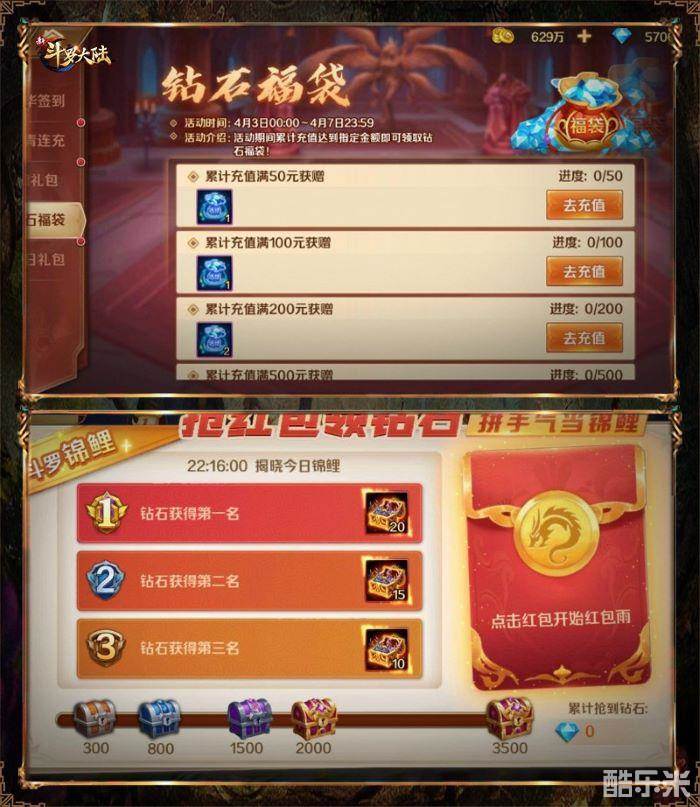 此外,钻石福袋活动将在4月3日开启,天降红包活动将在4月5开启,大量钻石等你来拿哦!