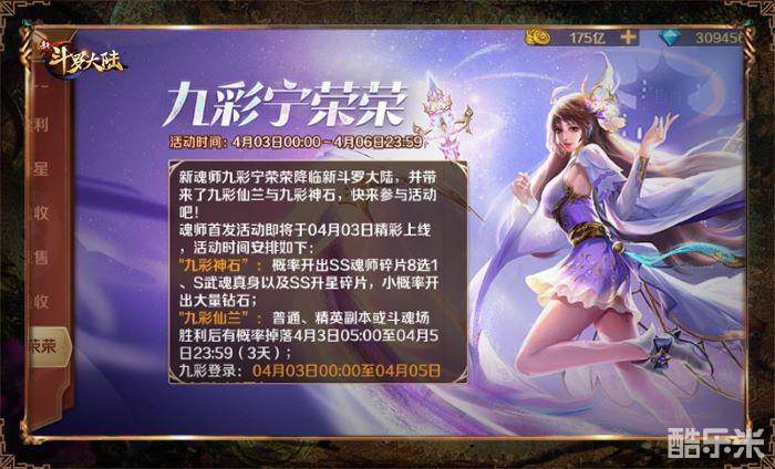 《新斗罗大陆》4月3日-4月9日九彩宁荣荣首发活动