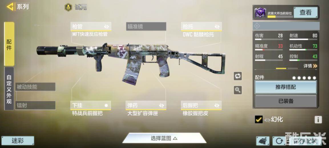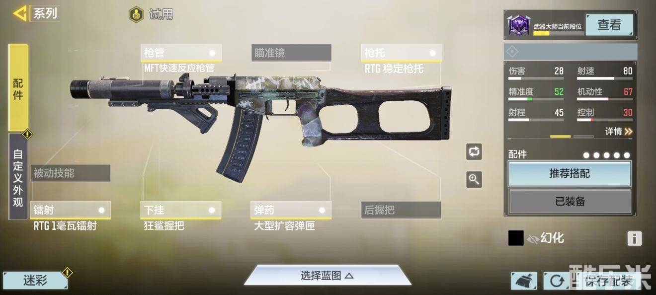 配件方面共有两套方案,上图是方案一,主打中近距离开镜作战,让你的压枪变得更加容易。缺点是机动性没有拉到极致,近距离碰到冲锋枪Fennec时会稍逊一筹。