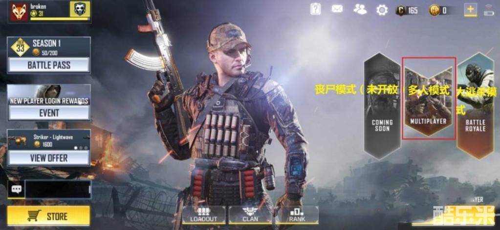 2、点击人物边上的三个按钮,就会跳出来丧尸模式、多人模式和大逃杀模式;