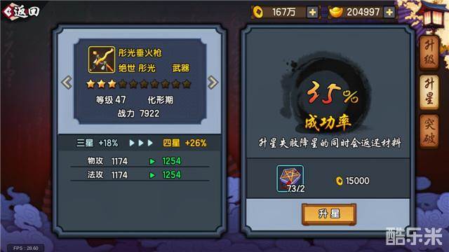 玩家通过消耗金币以及石髓和玉髓对装备进行升星。不同装备位置突破星级后加成的基础属性不同,如果资源有限,玩家可以按照实际需求来提升装备星级。