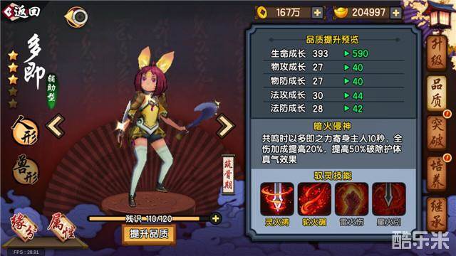 玩家通过珍盒、闯关、历练、商肆购买等方式皆可获得驭灵残识,到达一定数量后,即可提升驭灵品质。提升驭灵品质不但能够提升驭灵战斗力,还可以使驭灵获得新的技能。