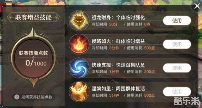 【副战场辅助】:副战场可以给主战场提供大量的支援,通过杀敌,击杀小怪,杀首领来获得联赛技能点数和士气,士气值每提升500即可为主副战场提供增益BUFF;技能点数可以在主战场用来释放联赛技能