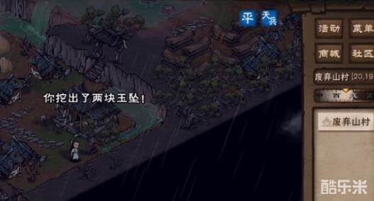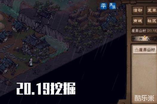 1、首先进入游戏后来到废弃山村20,19处进行挖掘,如下图所示: