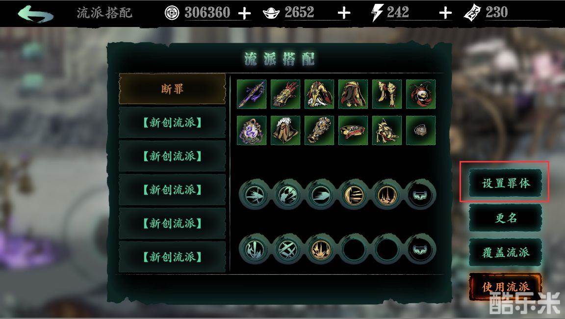 在本次更新后,玩家可以打开工具者处的流派搭配界面,选择将其中一套流派设置为自己的罪体所用流派,这样自己的罪体就拥有另一套配置了。