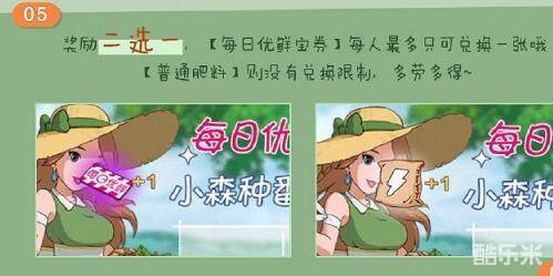 活动玩法:通过种植番茄获得的优鲜礼盒可以在活动界面选择获得每日优鲜宝券或者普通肥料,兑换到的每日优鲜宝券请在背包内使用。
